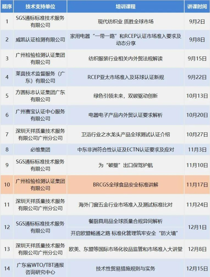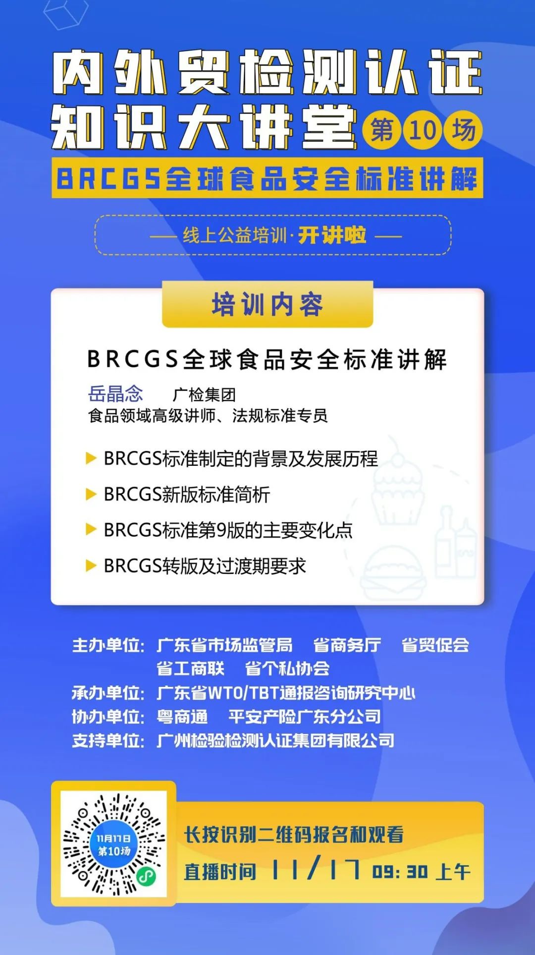 为贯彻落实《国务院办公厅关于促进内外贸一体化发展的意见》,由广东省市场监督管理局、广东省商务厅、广东省贸促会、广东省工商业联合会和广东省个体劳动者私营企业协会主办,粤商通和中国平安财产保险股份有限公司广东分公司协办的“内外贸检测认证知识大讲堂”(简称“大讲堂”)系列公益培训活动于9月至12月开展。